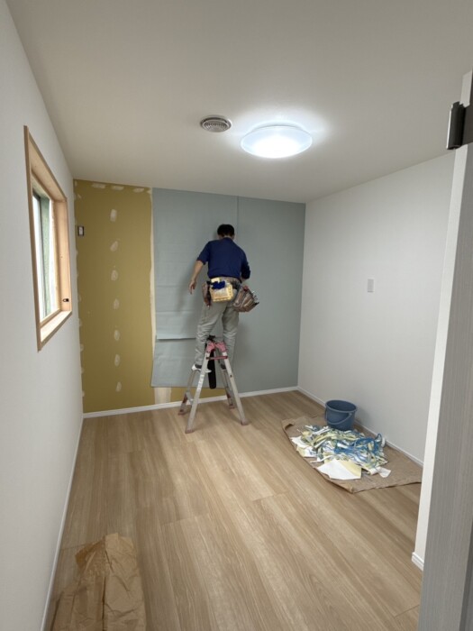 アクセントクロスを貼ってます。