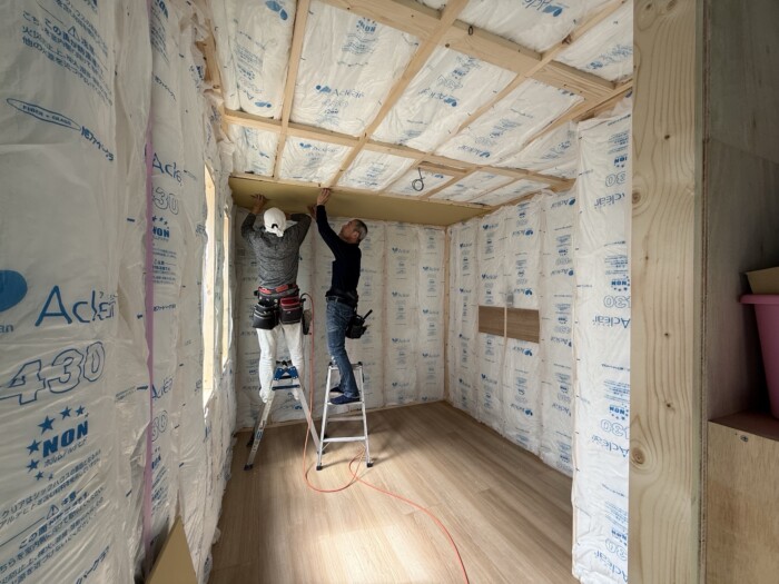 しっかりと壁と天井には100㍉の断熱材が入っています。